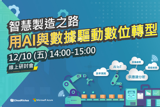 - 雲馥數位保留講師、議程、報名資格審核之權利。如有相關疑問,請來信至客服信箱 service@cloudriches.com