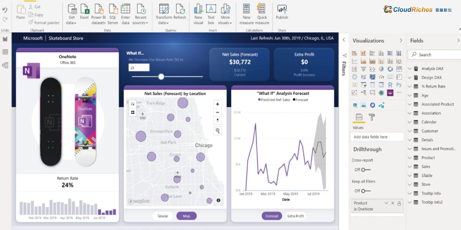 建立應用各種互動式資料視覺效果,讓資訊一目了然的報表。使用拖放式畫布,以及由 Microsoft 與合作夥伴提供的數百款新式資料視覺效果來訴說資料故事 – 或使用 Power BI 開放原始碼的自訂視覺效果架構,建立自己的視覺效果。運用佈景主題、格式化及版面配置工具,設計您的報表。