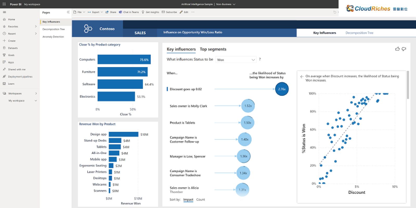 跨熱門 Microsoft Office 應用程式 (例如 Microsoft Teams 和 Excel) 輕鬆合作處理相同的資料、協同編輯報表,並分享見解。讓組織中的每個人都能快速作出資料驅動決策,進而採取策略行動。